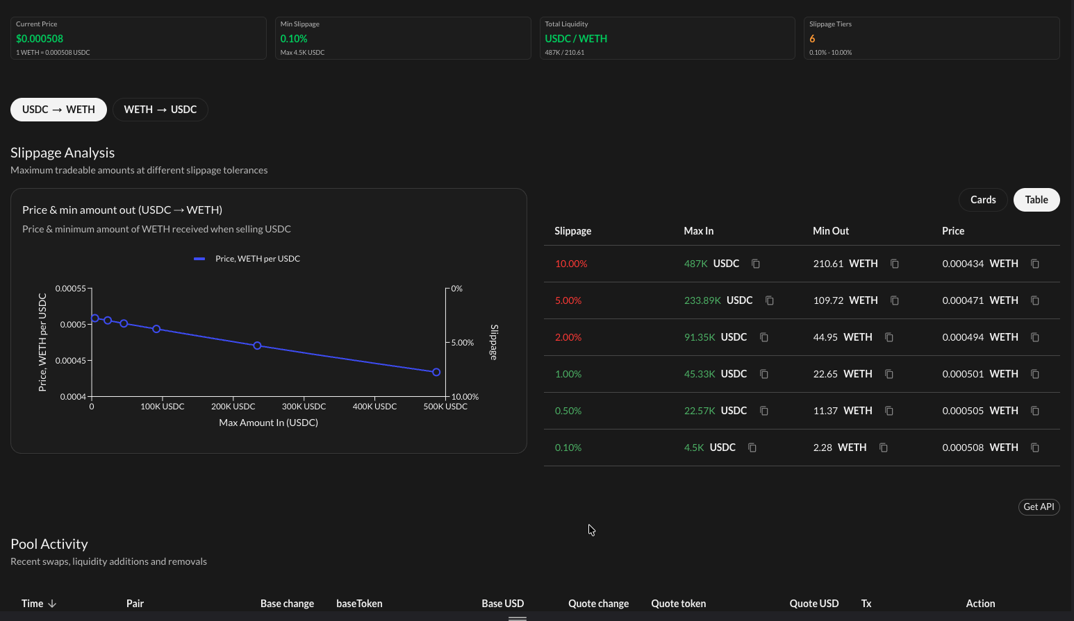 Querying Pool Slippage and Liquidity